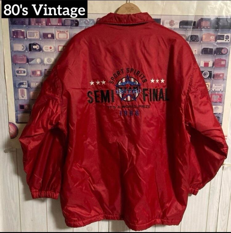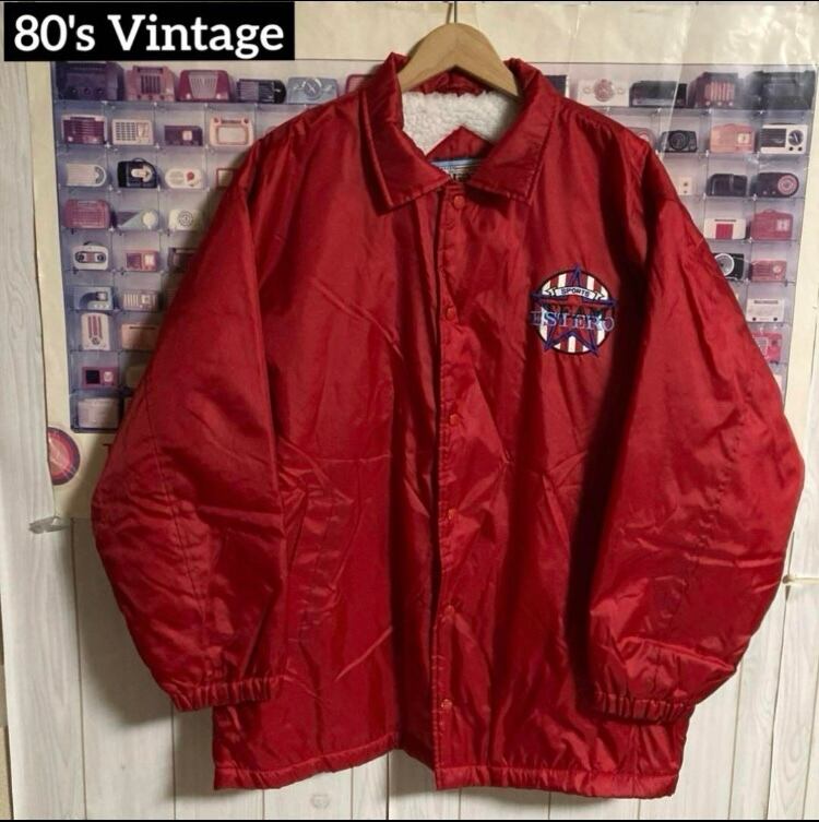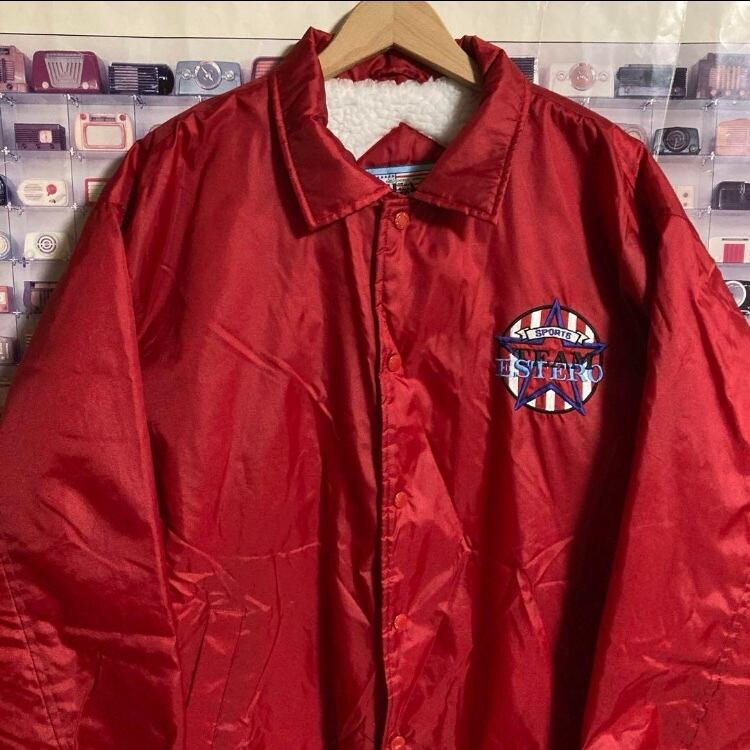 80sヴィンテージ韓国製TEAM ESTEROチームエステロ両面刺繍ロゴワッペン裏地ボアナイロンコーチジャケット