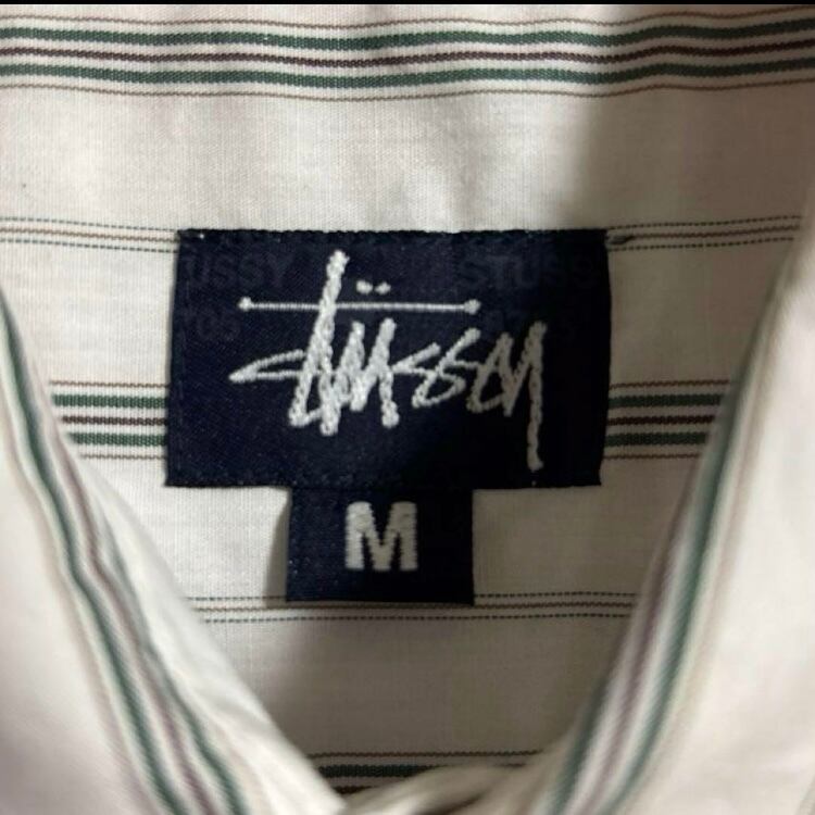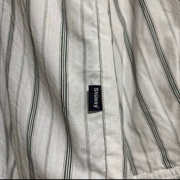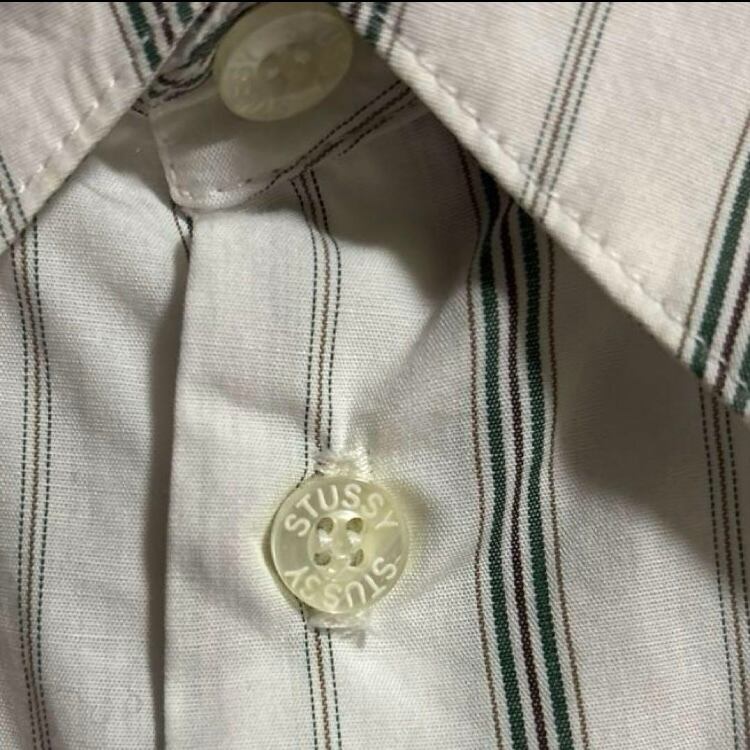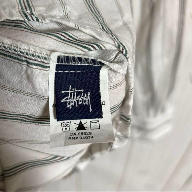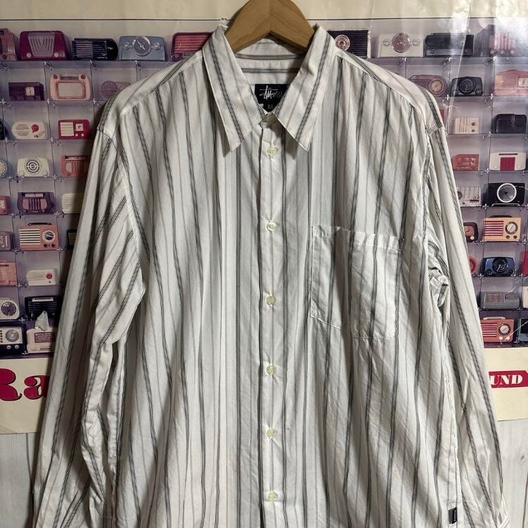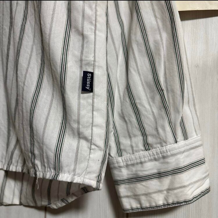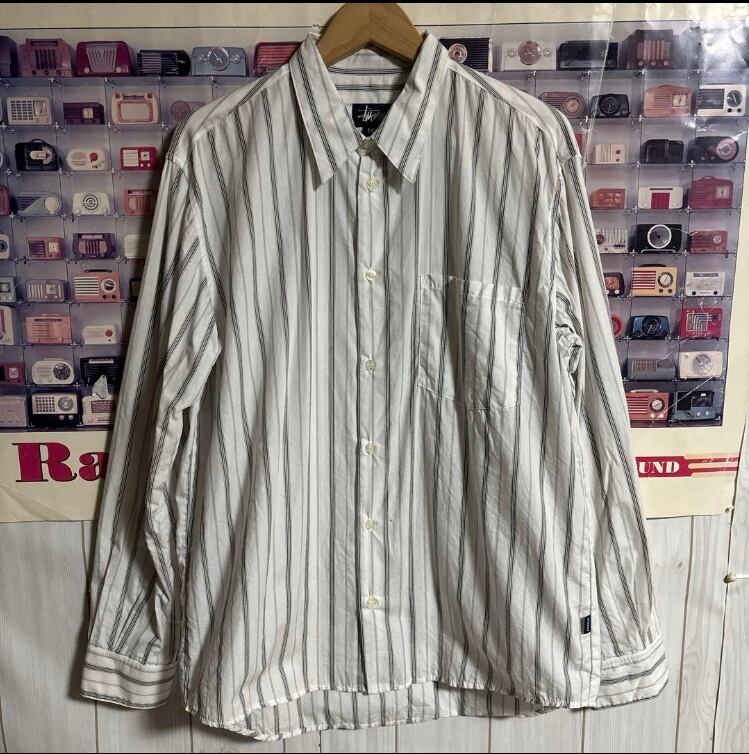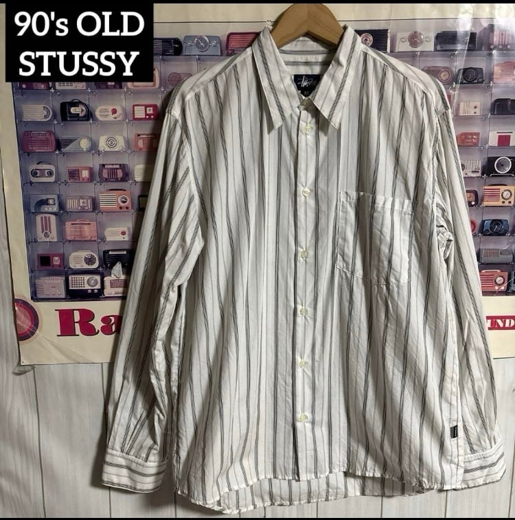 希少90s紺タグUSA製OLD STUSSYストライプ柄長袖シャツ