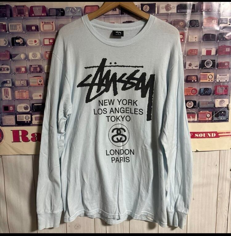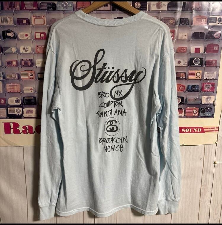 名作メキシコ製STUSSY World Tourワールドツアー両面ロゴ長袖Tシャツ ロンT