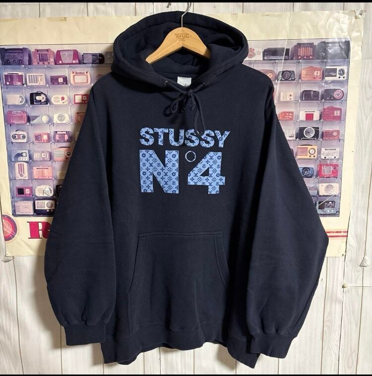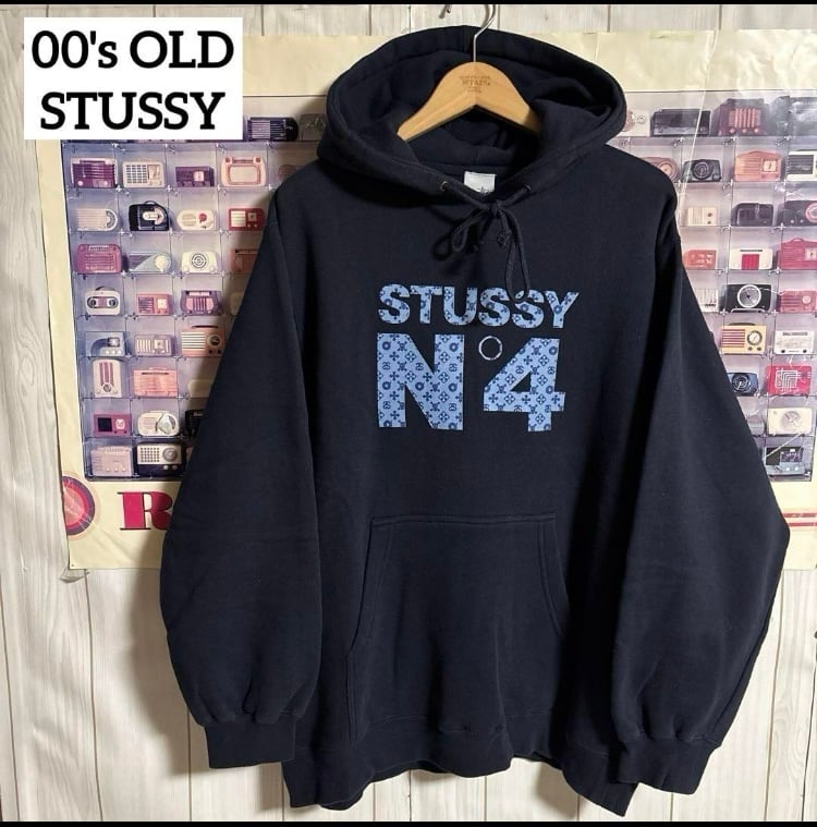 名作00s銀タグOLD STUSSY N4モノグラムロゴスウェットパーカー オールドヴィンテージ フーディー