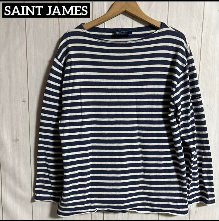 90sフランス製SAINT JAMESウェッソンOUESSANTバスクシャツボーダー長袖TシャツロンTオールドヴィンテージ
