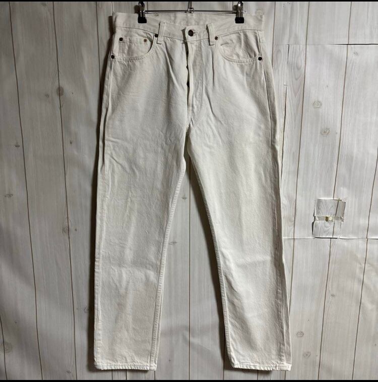 90s USA製LEVI'S501ホワイトデニムパンツW34ボタン裏刻印525ヴィンテージ