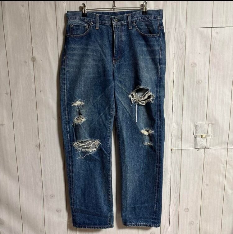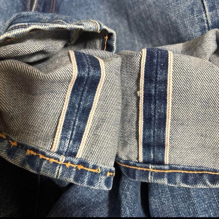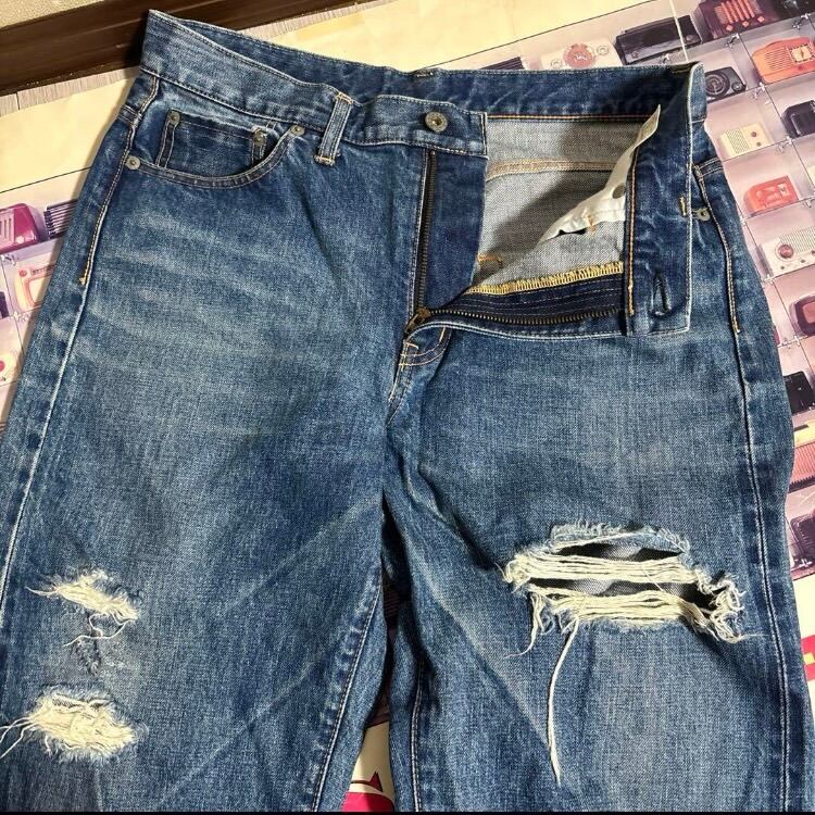 USEDダメージ加工セルビッチデニムパンツ赤耳