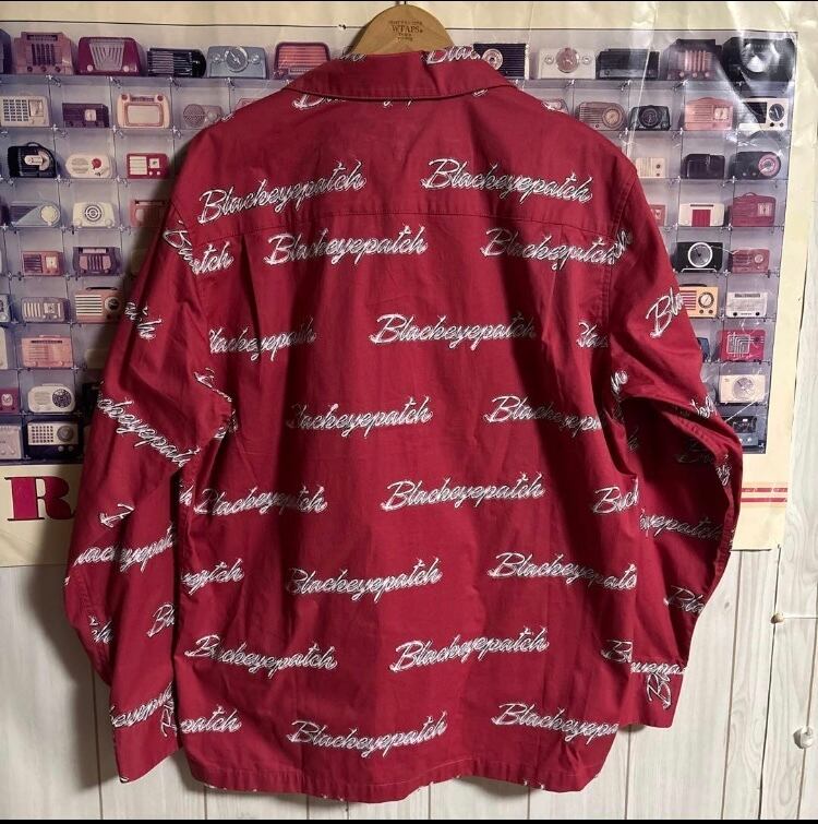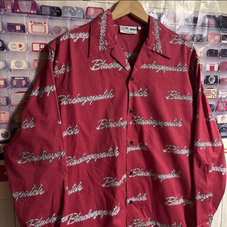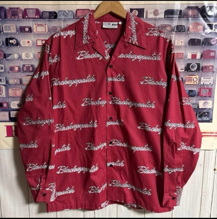 BLACKEYEPATCH WHIP EMBLEM L/S SHIRT 総柄ロゴ開襟長袖シャツ