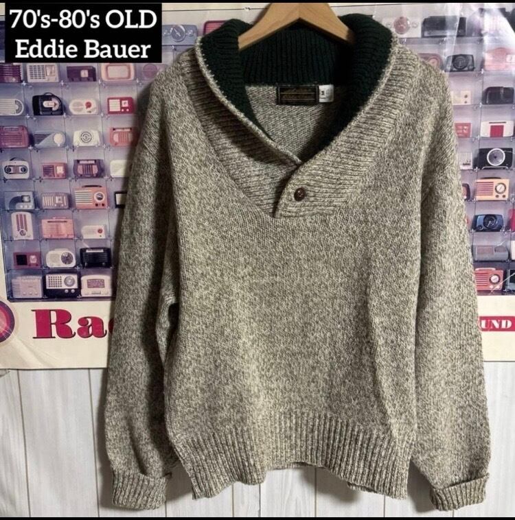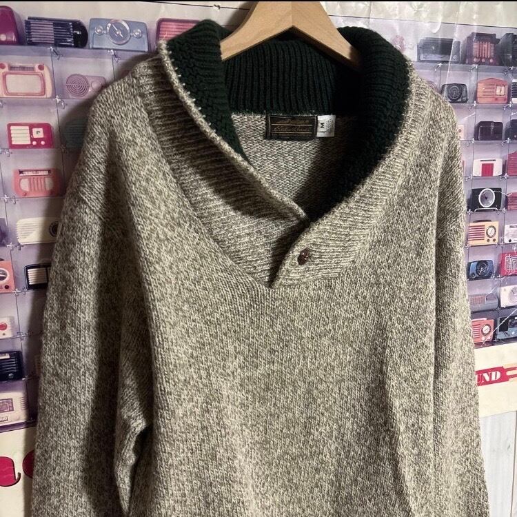 70s-80s USA製OLD Eddie Bauerショールカラーウールニットセーター オールドヴィンテージ