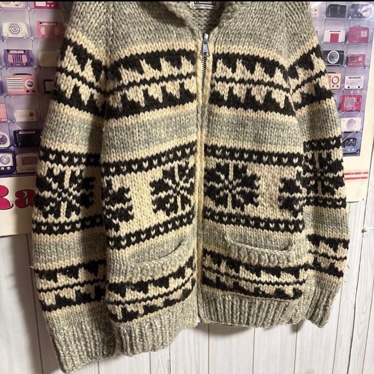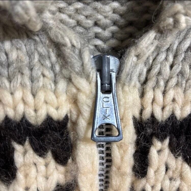 極上80s-90sカナダ製LONGHOUSEロングハウス旧タグオールドカウチンニットセーターカーディガン ジップジャケット ヴィンテージ肉厚XL