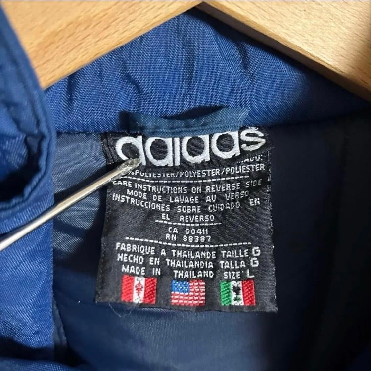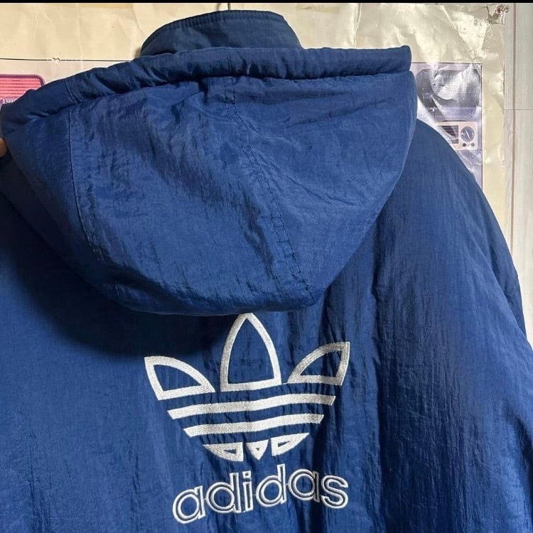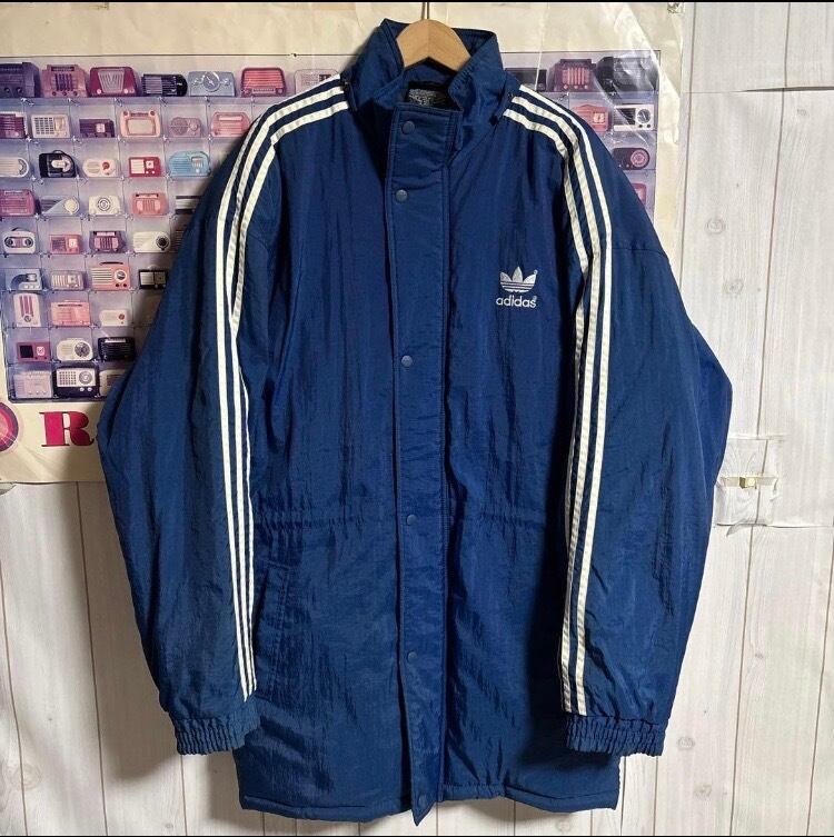 希少80s-90s万国旗タグOLD adidasトレフォイルグラウンド中綿ベンチコート オールドヴィンテージ