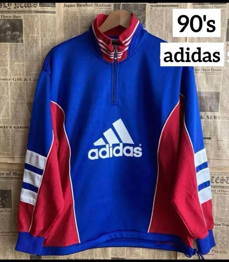 90's adidas 万国旗タグ ビッグロゴプルオーバージャージ アノラックトラックジャケットハーフジップ
