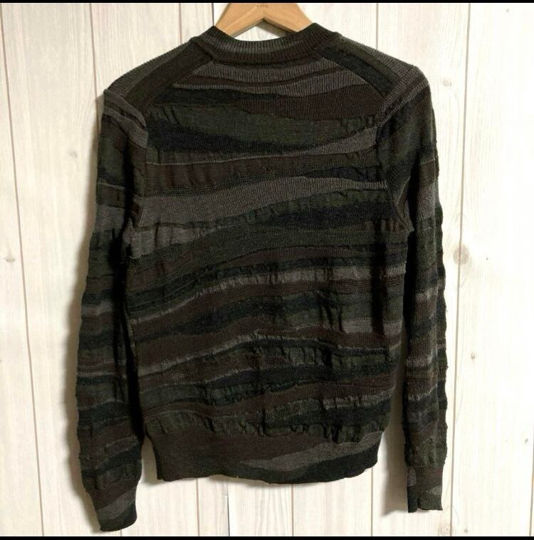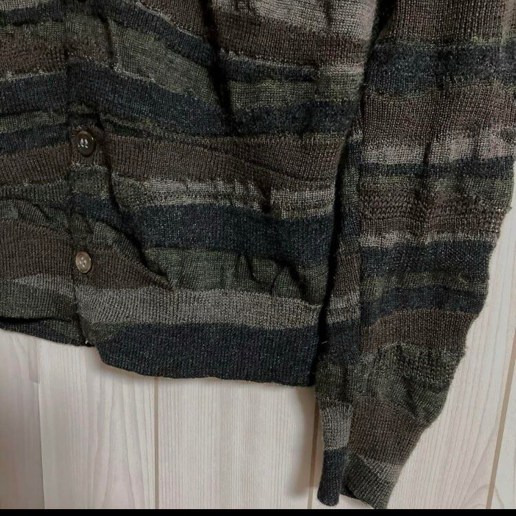 再構築マルチボーダー縮絨ニットカーディガン