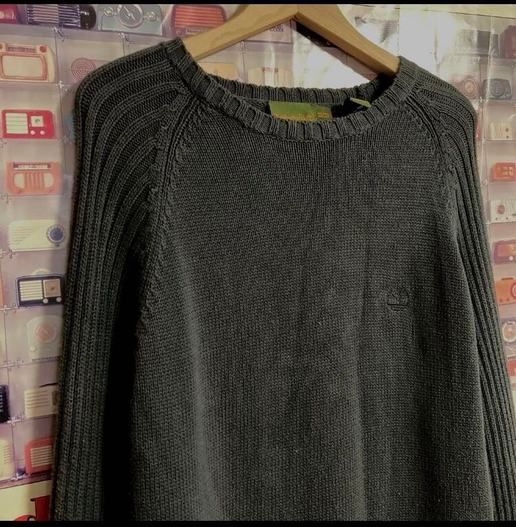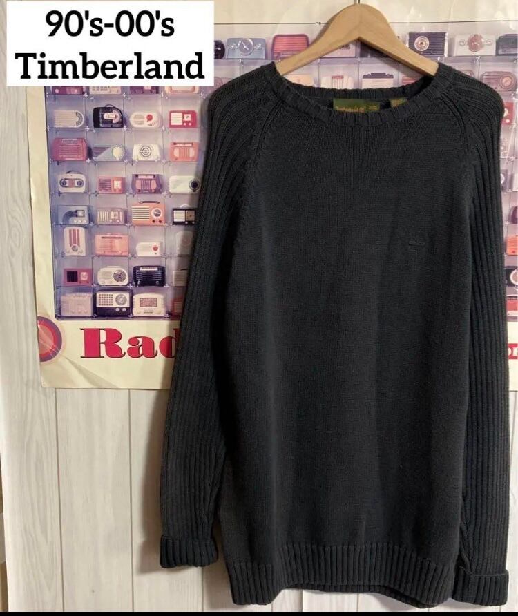 90s-00sヴィンテージTimberland刺繍ロゴワンポイントコットンニット長袖 カットソー