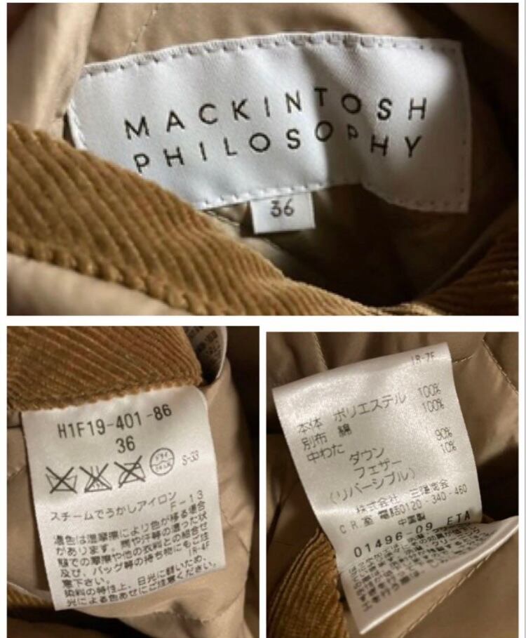 MACKINTOSH PHILOSOPHYマッキントッシュフィロソフィーリバーシブルキルティング中綿コートダウンジャケット