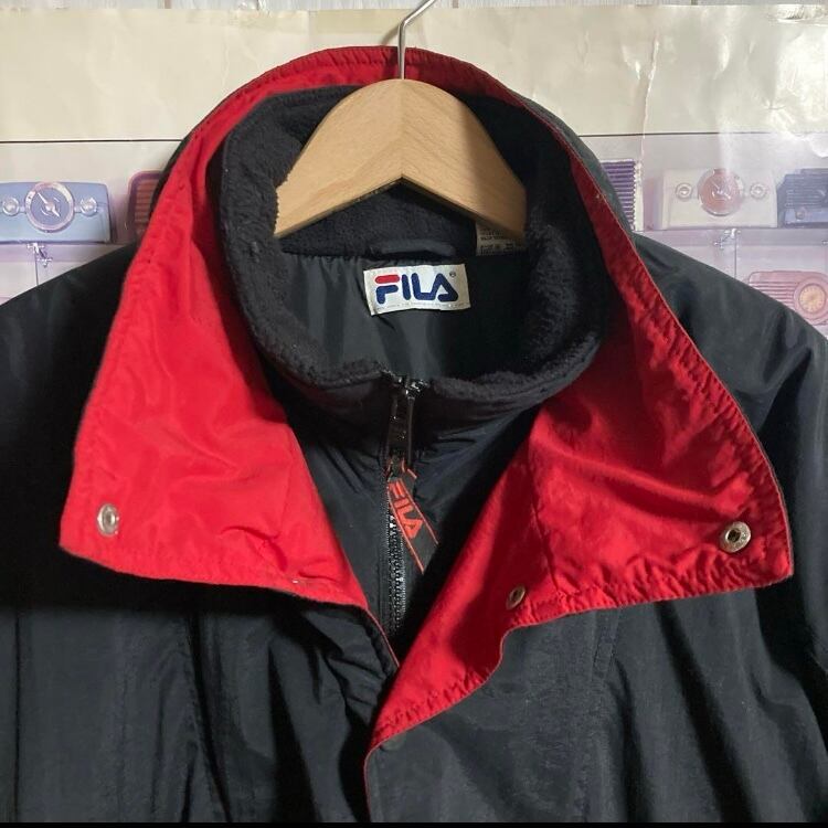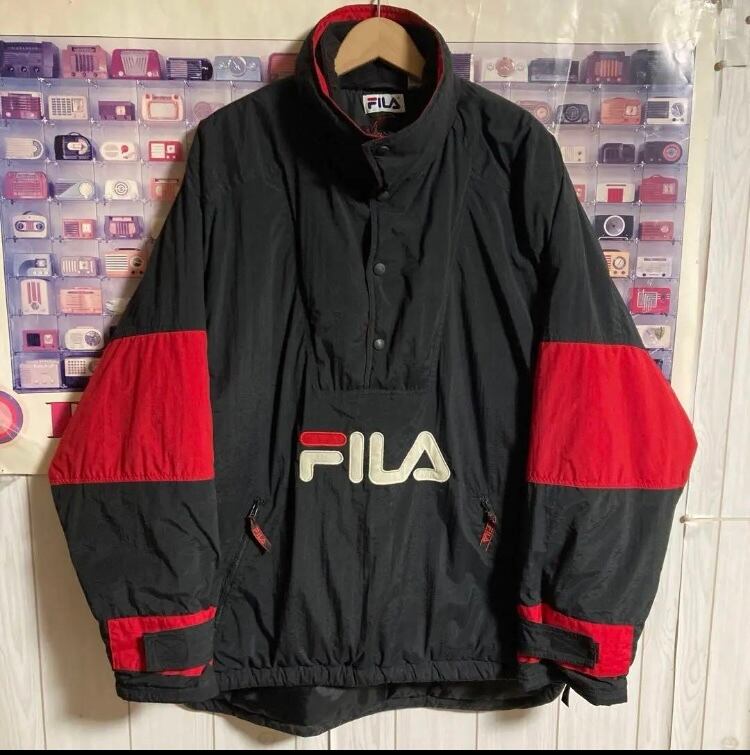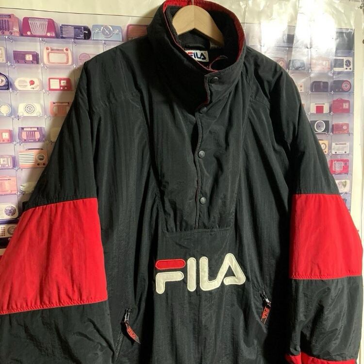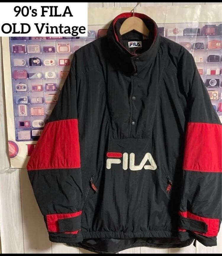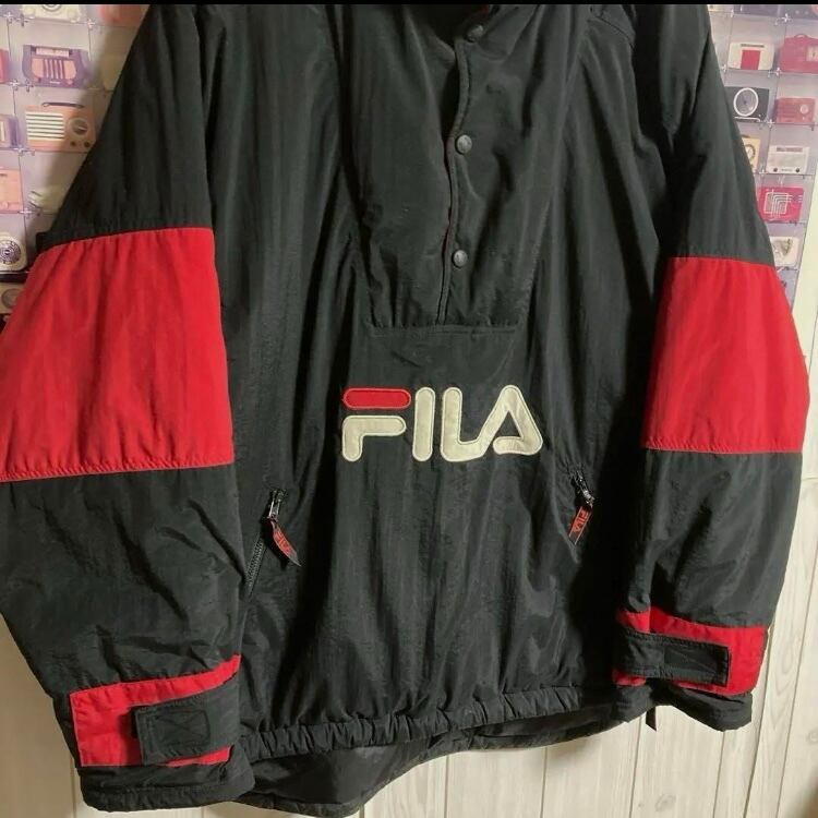 90sオールドFILA中綿プルオーバーアノラックナイロンジャケットブルゾンフリースネックヴィンテージ