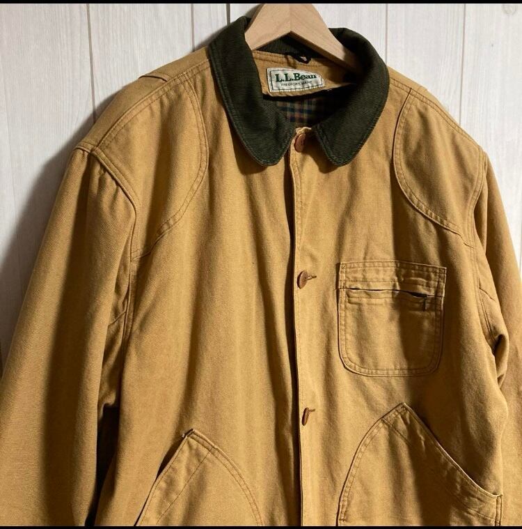 極上80s LL Bean ライナー付ダック地ハンティングカバーオールジャケット/フィールドコートPRIMALOFT プリマロフト/チェック柄ライナー