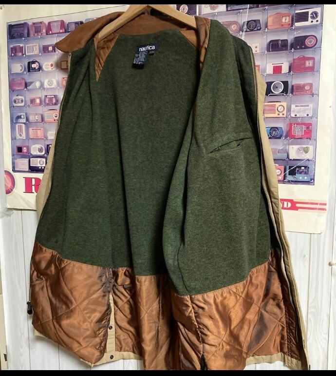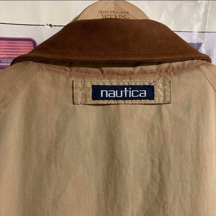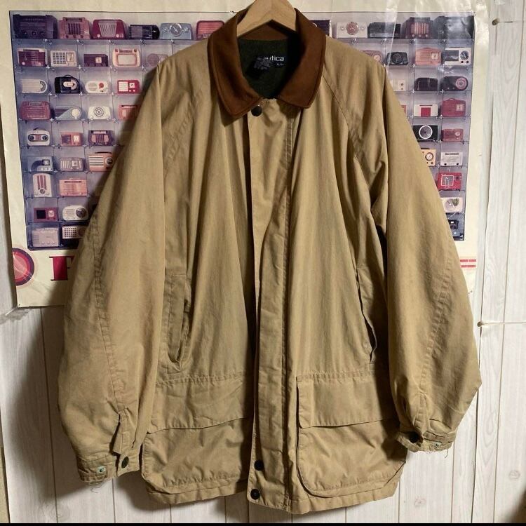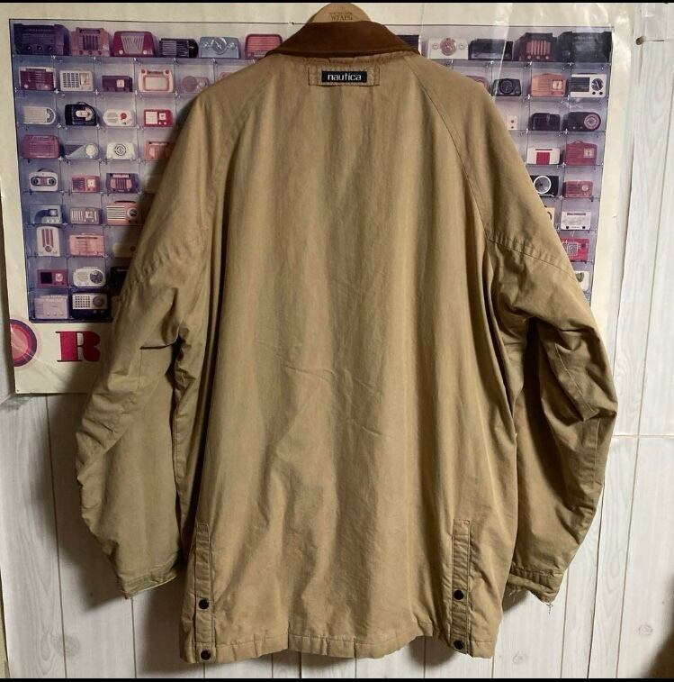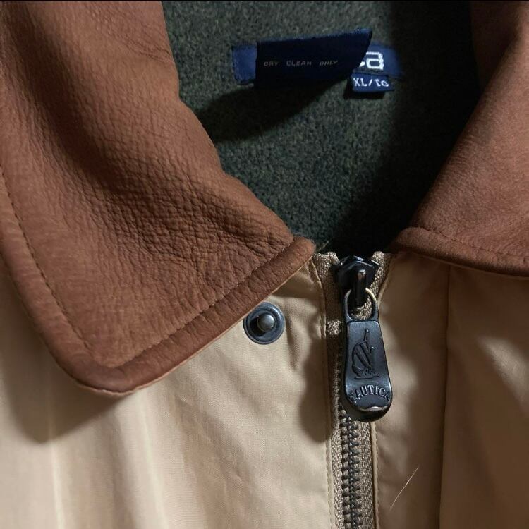 90sヴィンテージOLD NAUTICAハンティングカバーオールジャケットXL襟レザー切替オールド