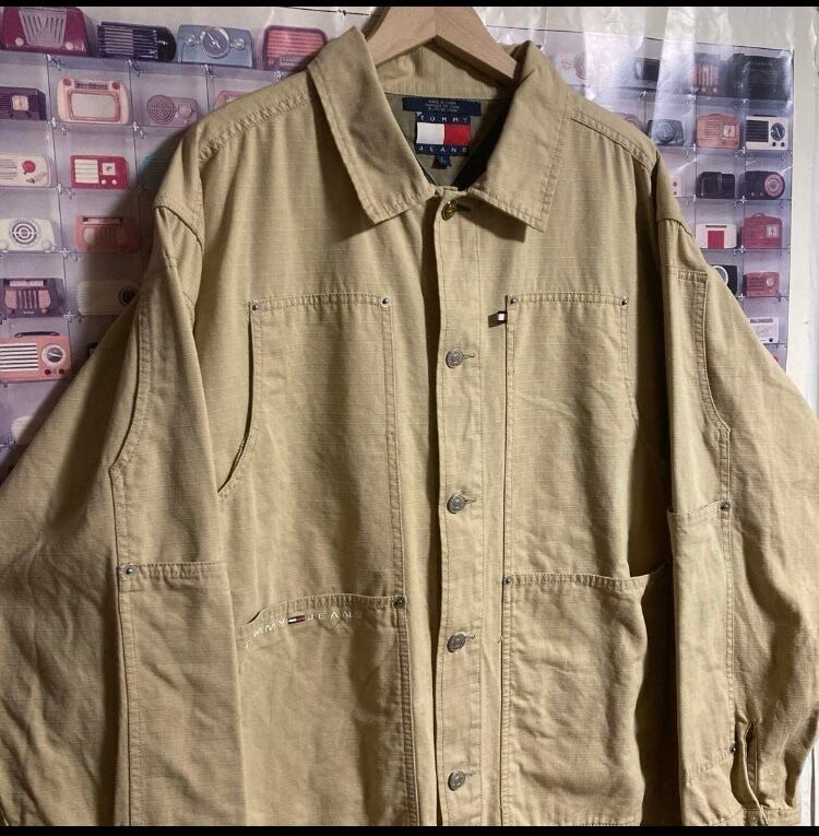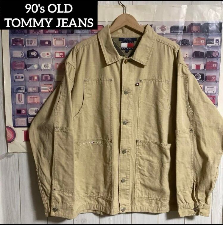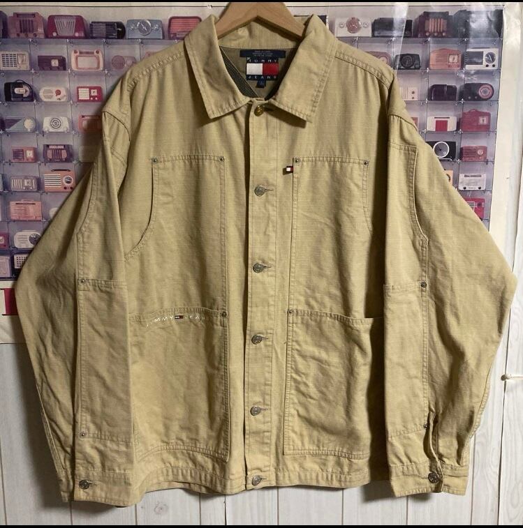 90s フラッグ旧タグオールドトミーOID TOMMY JEANSカバーオールワークジャケット/ヴィンテージ