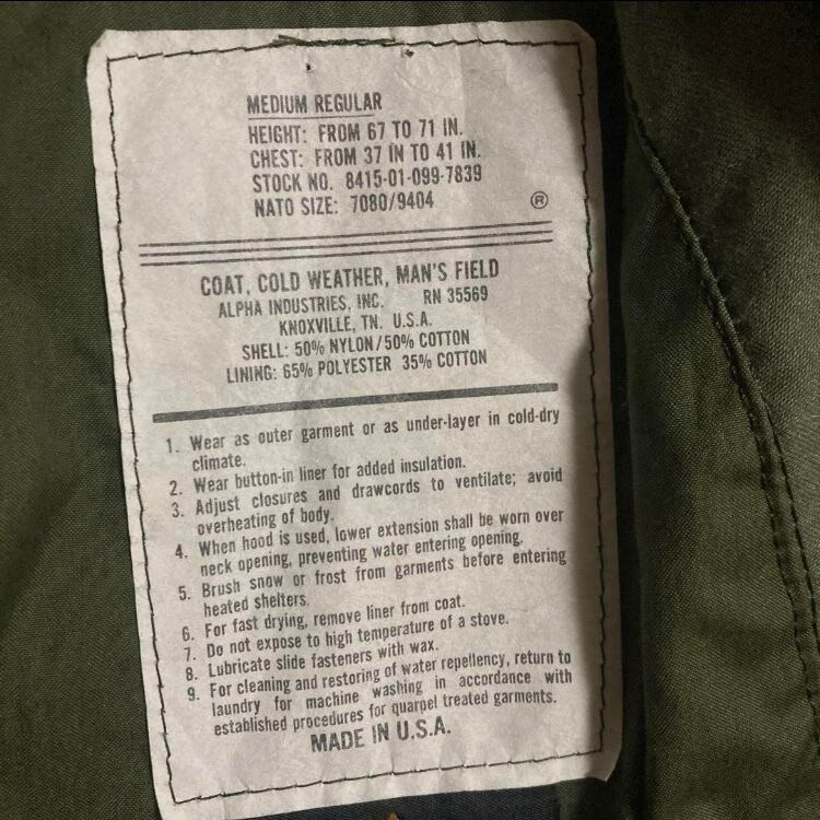 80s-90s USA製ALPHA社製M65ミリタリーフィールドジャケットフライトコート COAT COLD WEATHERコールドウェザー米軍3rdモデル /US ARMY NAVY