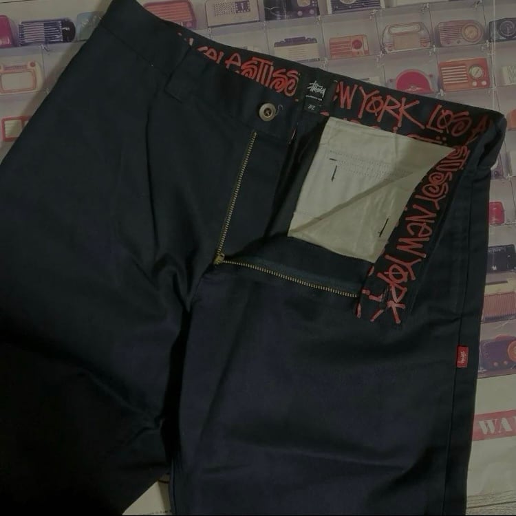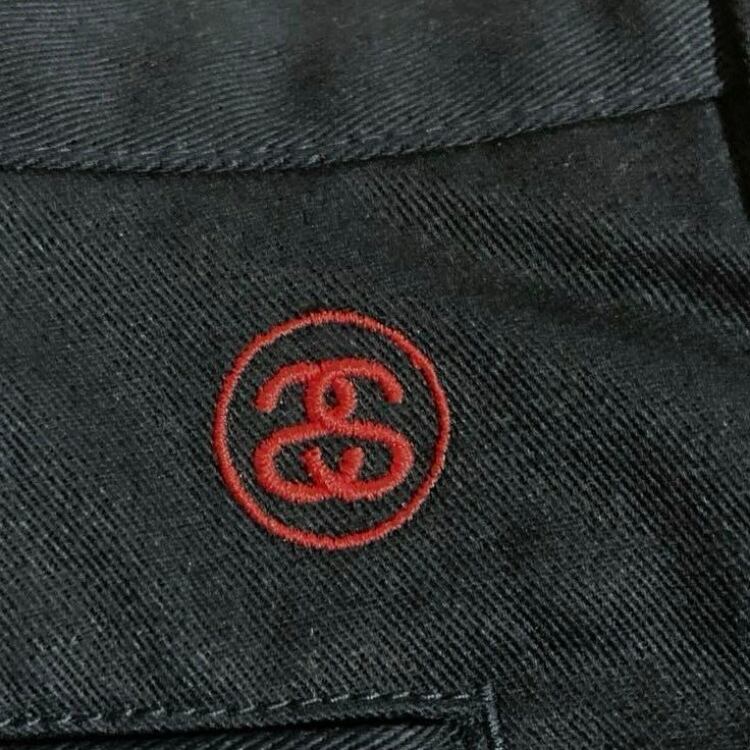 STUSSY裏地ショーンフォント総柄ロゴチノワークパンツSCRIPTセルビッチSK8