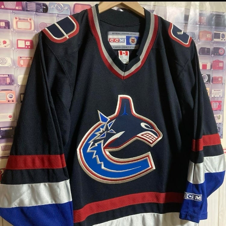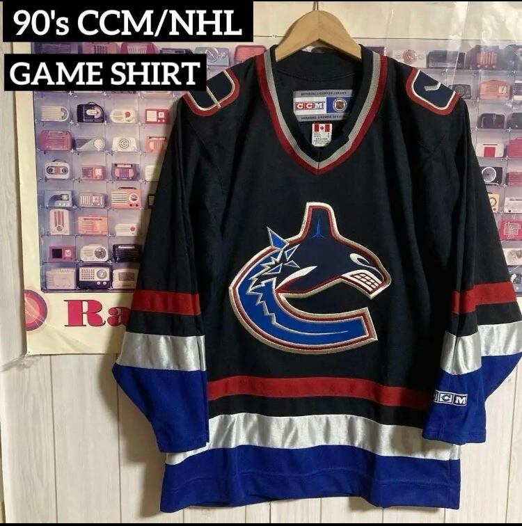 90sカナダ製CCM NHLバンクーバーカナックスアイスホッケーゲームシャツ/オフィシャル/ジャージユニフォーム