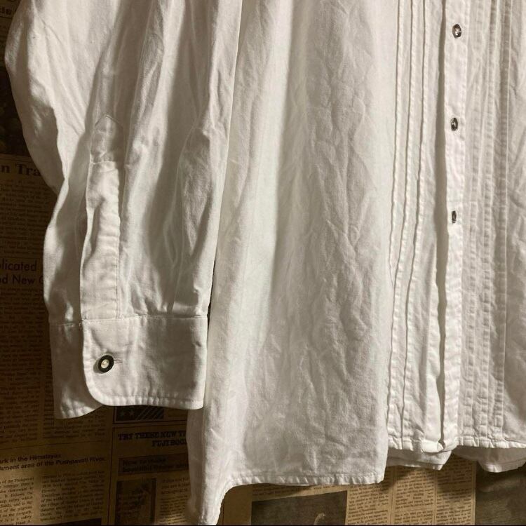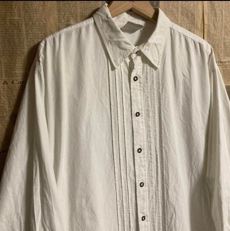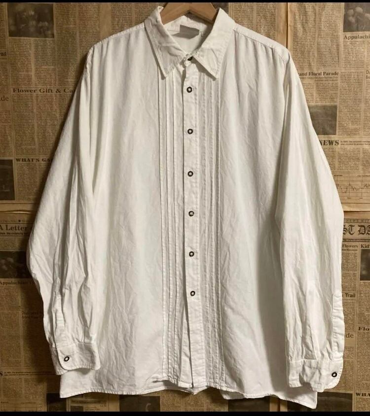 ドイツ製ユーロ古着オールド Isar Trachtenタック長袖シャツブラウス白ヨーロッパヴィンテージ