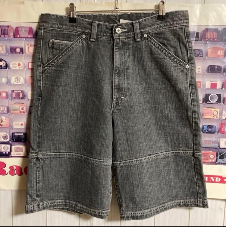 90s-00s MASTERPIECEバギーブラックデニムショーツ ショートハーフパンツ