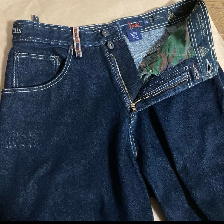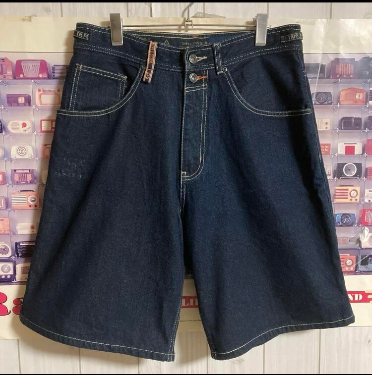 90S-00s TRIPLE FIVE SOULバギーデニムショーツハーフパンツワイドショート TS5 NYC西海岸SK8hiphopチカーノ
