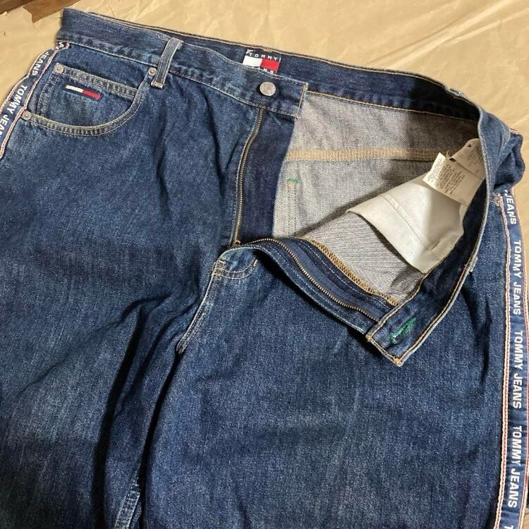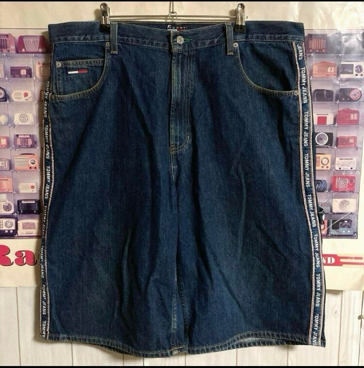 極上90sメキシコ製OLD TOMMY JEANS サイドラインロゴペインターデニムバギーショーツ ショートハーフパンツ オールドトミー