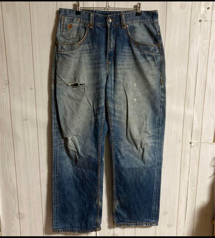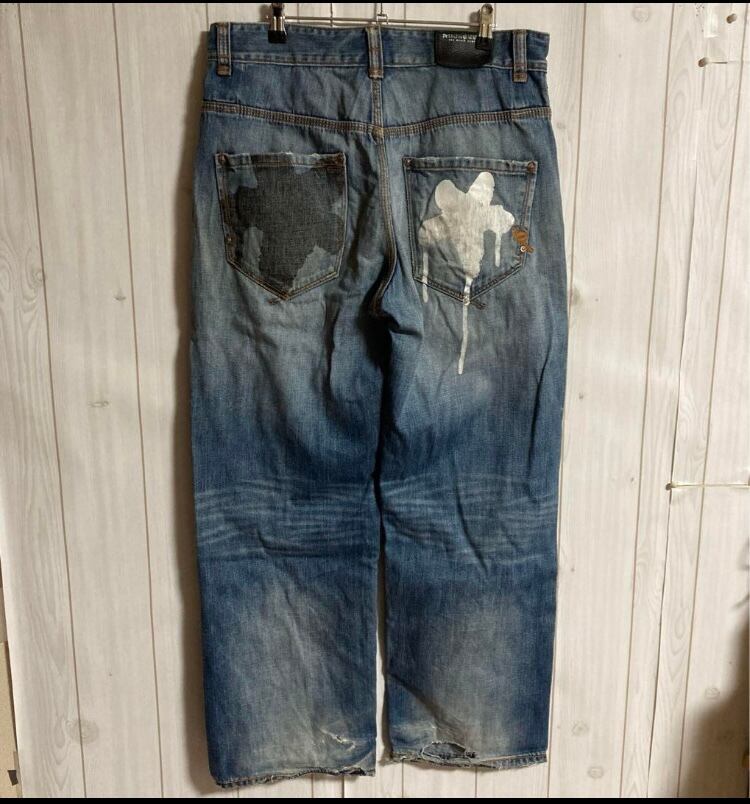 90s-00s ROCA WEAR USED加工ペイントバギーデニムパンツ