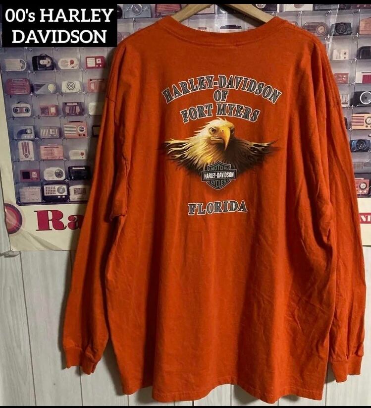 USA製00sハーレーダビッドソン両面イーグルロゴ長袖TシャツロンT古着XXL