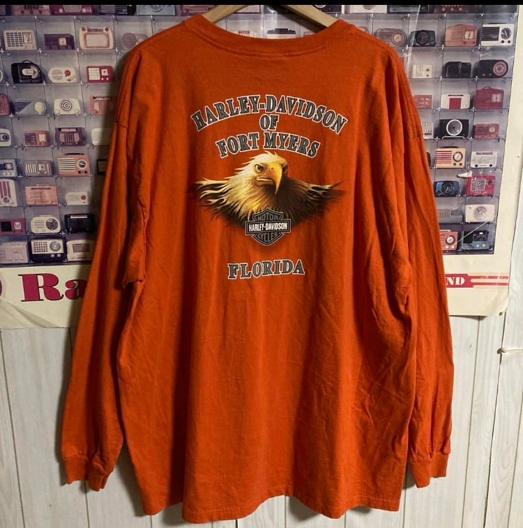 USA製00sハーレーダビッドソン両面イーグルロゴ長袖TシャツロンT