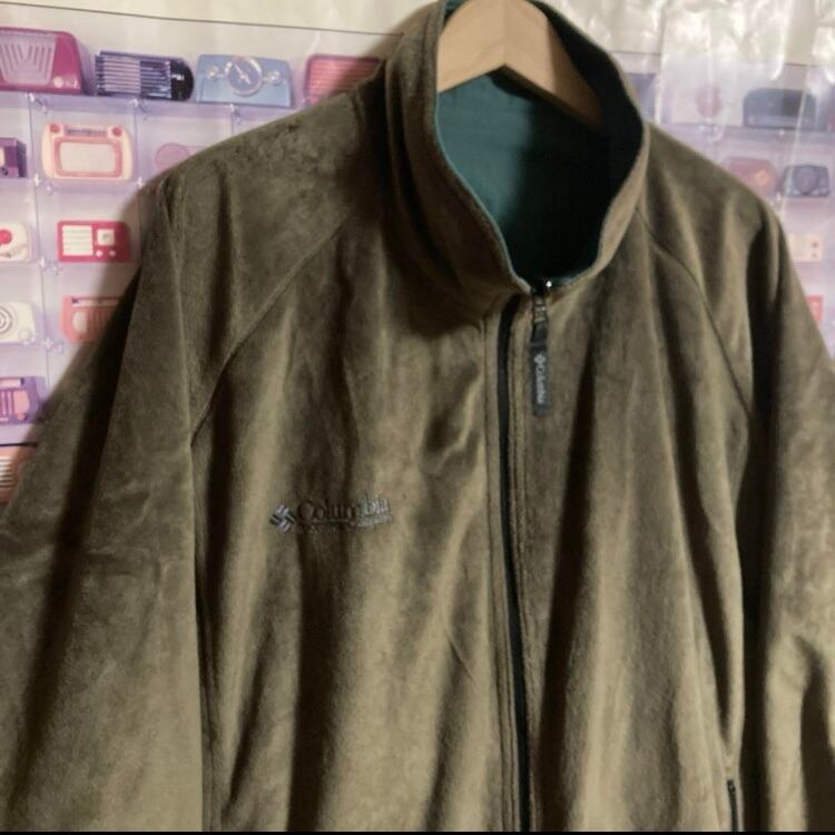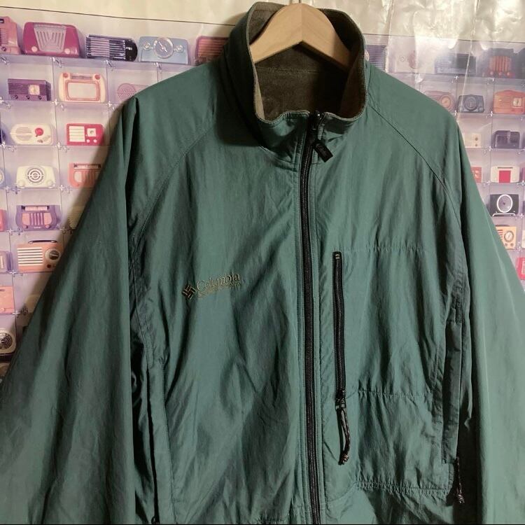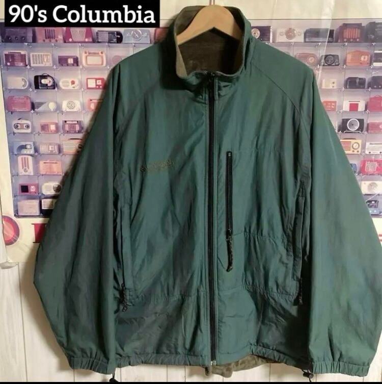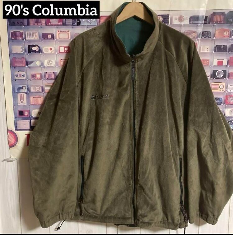 90s旧白タグオールドヴィンテージOLD Columbiaリバーシブルフリース中綿ジャケットブルゾン