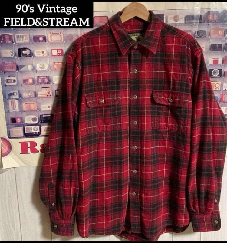 90sヴィンテージFIELD&STREAMチェック柄長袖ヘビーネルシャツUS古着