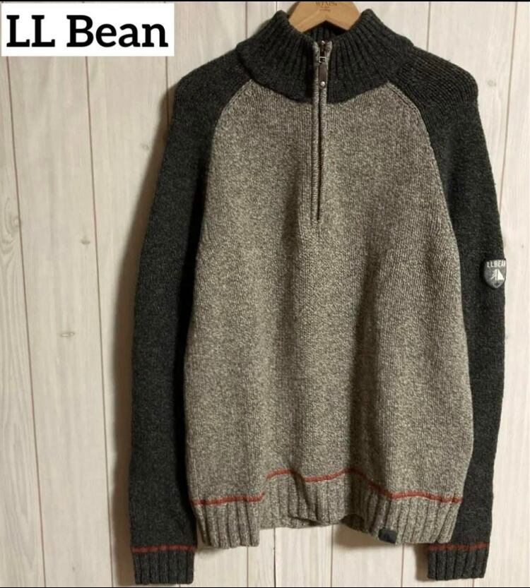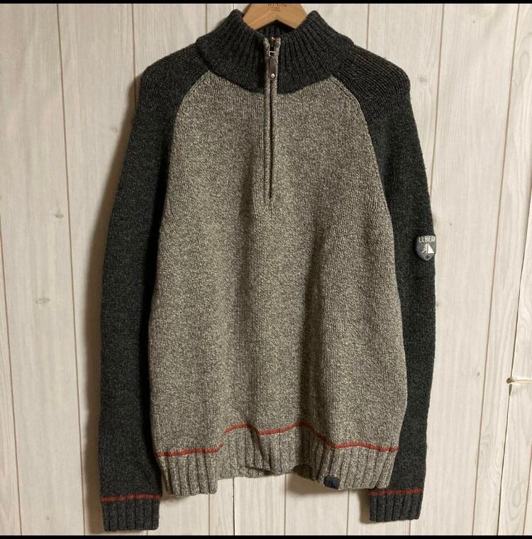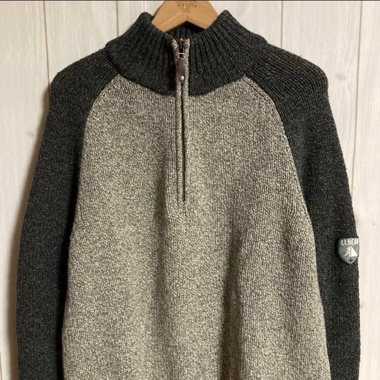 00s LL Bean ハーフジッププルオーバーハイネックニットラムウールセータードライバーズ