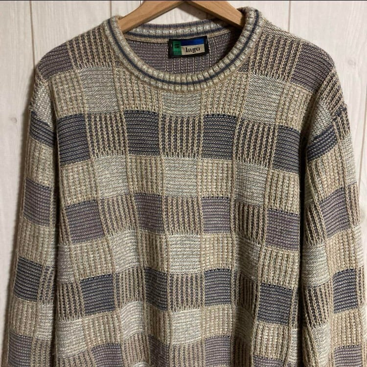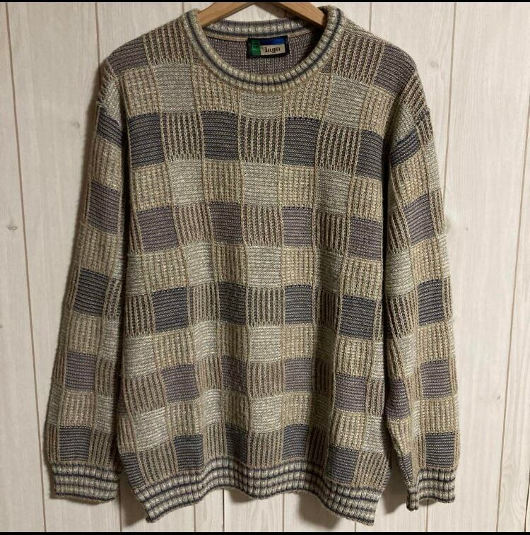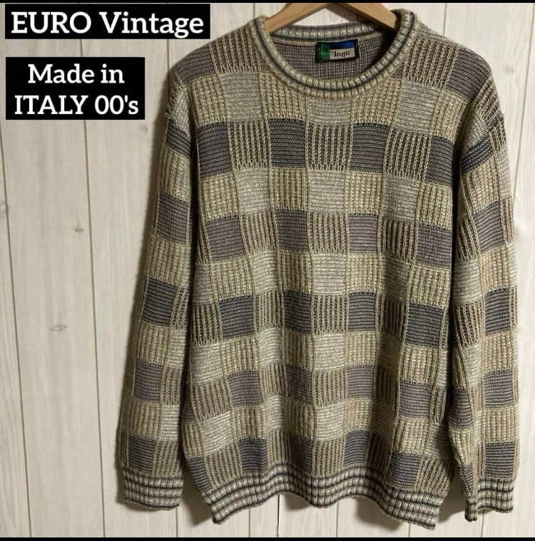00sイタリア製lago3D総柄デザインニットセーター ヨーロッパ古着オールドユーロヴィンテージ90s Y2K