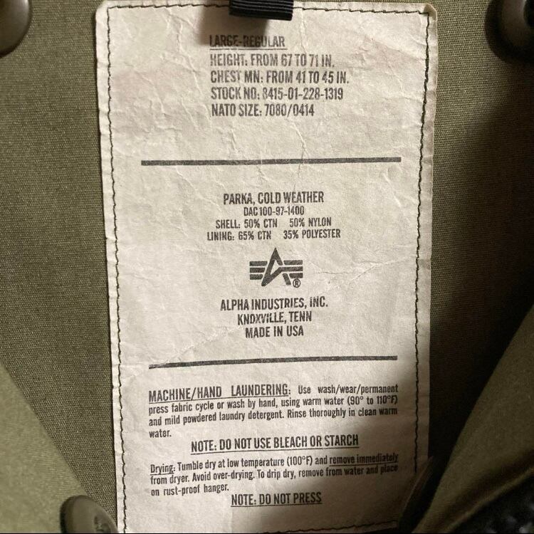 90s USA製US ARMY ALPHA社製PARKA COLD WEATHERパーカーコールドウェザーミリタリーフライトジャケット米国軍