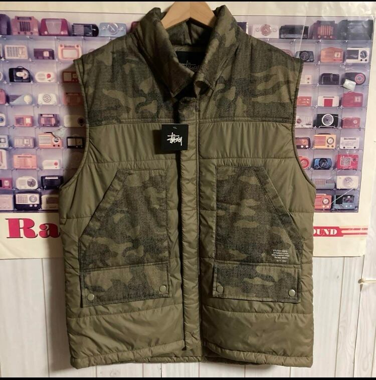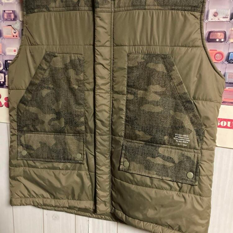 STUSSY MFG. CAMO CONTRAST VEST迷彩柄カモフラ中綿ベスト ミリタリージャケットLフード